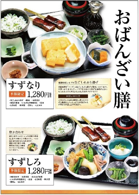 人気の菜めし田楽定食は980円から、天ぷらの定食や、