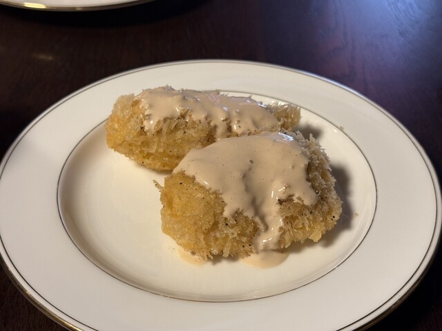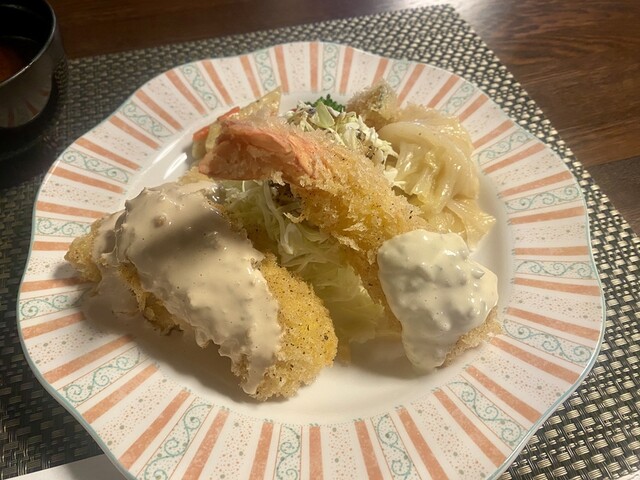 食後中に牡蠣ってまだありますか?とお尋ねしたところあるとのことで追加でカキフライもいただきました╰(*´︶`*)╯♡