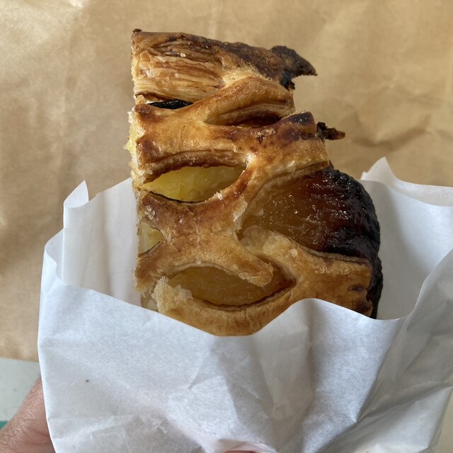 まずはアップルパイ。ごろっとした甘いりんごが存在感あります。メロンパン屋さんのアップルパイとは思えぬクオリティです。美...