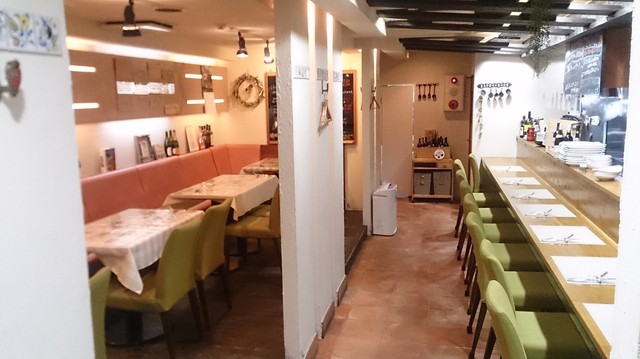 一度ランチに訪れていて好印象だったので、ディナー時に再訪。夜は雰囲気が全く違って薄暗くて良い感じ。店の中は全てイタリアの雰囲気そのまま。