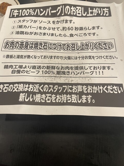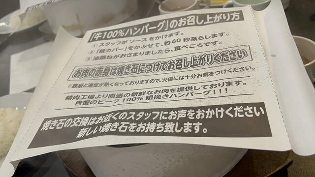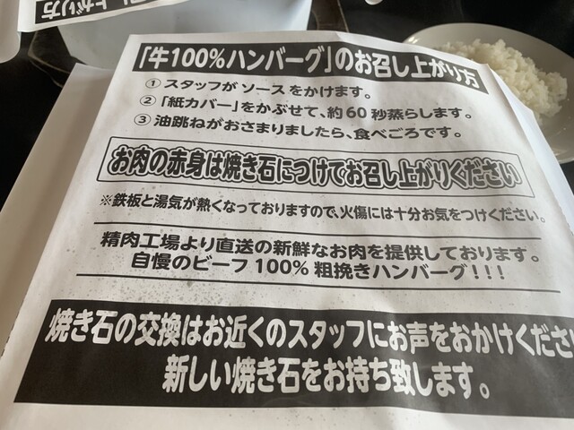 焼き石を使うタイプのレアなハンバーグで、値段を考慮しなくてもかなり高レベルの美味さだと思うのですが‥過小評価されすぎて...