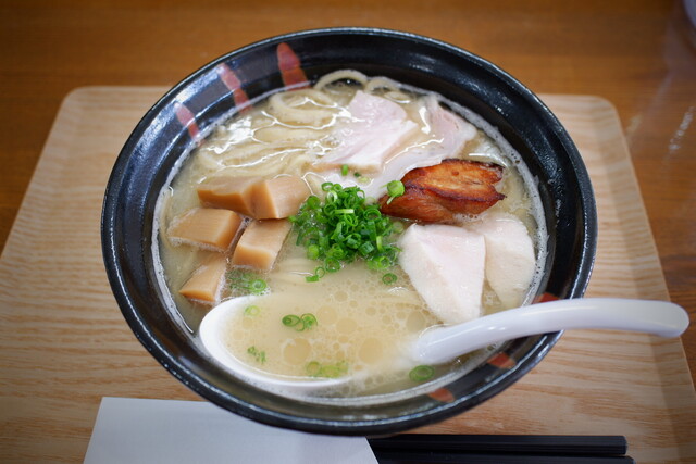 名古屋市緑区にあるラーメン店、平日の12時頃にランチ目的での訪問。 このメニューを券売機で注文し、案内されたカウンター席で頂く。 ★ 塩らーめん 880円 ★ 替え... 詳細を見る