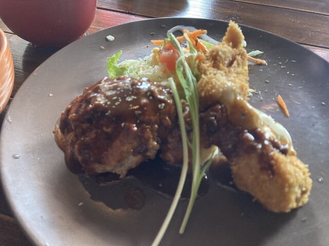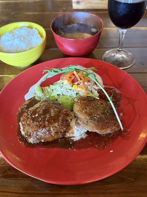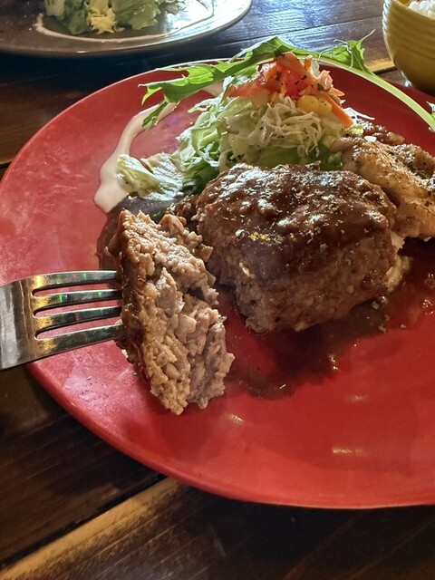 ボードには自家製ハンバーグ+ミラノ風ポークステーキとありましたが、注文の際に...
