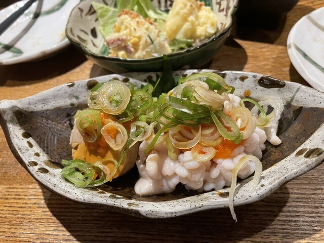新鮮な馬刺し、まろやかなどて煮、香ばしい焼き枝豆が美味しかった。お通しのなすの煮浸しはみりん甘すぎで好みではなかった。たちポンや生牡蠣は新鮮さや火のとおし具合が今一つで伸びシロあり... 詳細を見る