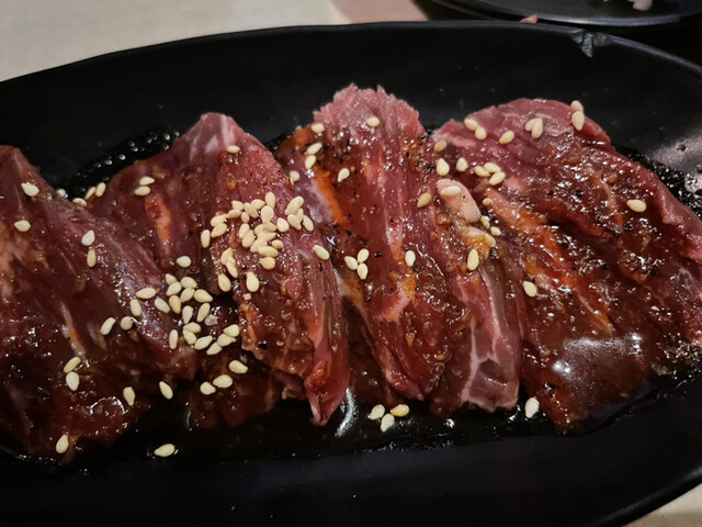 ニクテキ(牛ハラミ)は、二人前でいつもより量が多くなった分、終盤に入ると飽きが出てしまいま...