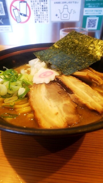 休日の昼開店時間に合わせて臨店するも満席で2名待ち。 煮干し台湾まぜそばを食べに来たけど、待ってる間に限定5食の超濃厚にぼしの海苔そばが気になり乗り換え。 初挑戦。 超濃厚にぼしののりそば 見た目に海苔一色でインパクトあり。 写真に撮ってもどんなメニューか一目見て分からないくらい真っ黒... 詳細を見る