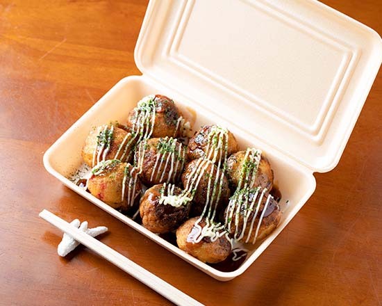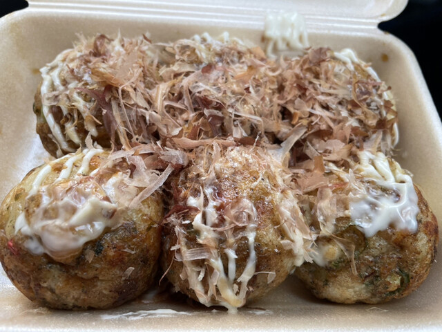 お水はセルフですが、たこ焼きはテーブルまで持ってきてくださいます。注文して5分も経たないうちに運ばれてきましたが、中がとろとろの熱々のたこ焼きでした。