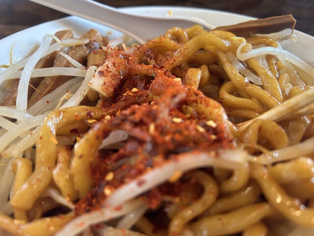 「餌」の看板が目を引く二郎系インスパイアのお店。 ランチにラー活で訪問しました(o^^o) 駐車場は店舗共同で店前に数台あります。 カウンターのみの店内、タイミング良か... 詳細を見る