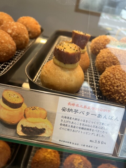 店内は落ち着いた雰囲気で、まるで田舎に現れたお洒落なカフェのよう。パンはショーケース越しに店員さんが取り分けてくれるスタイルで、安心感があります。価格帯は1個300〜500円ほど。