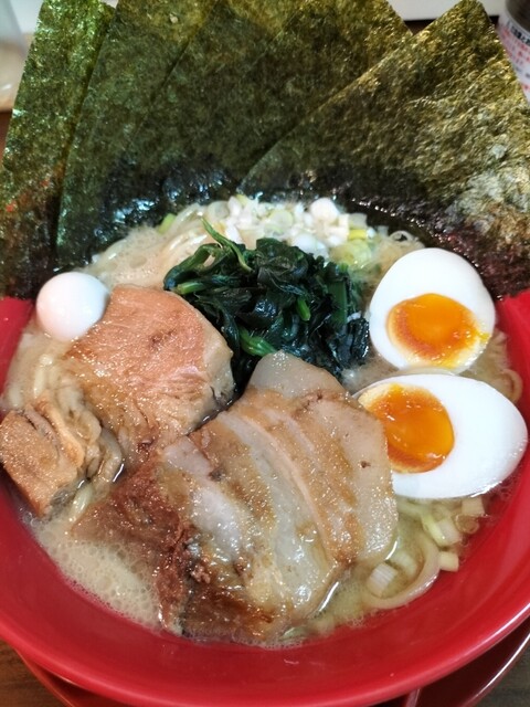 中村公園に出来た家系ラーメン行ってきました。MAXラーメンは食べ飽きたのでここのイチオシの赤盛り1080円にしました、味は醤油と塩が選べてあーしは醤油にしました。 赤盛りはMAX... 詳細を見る