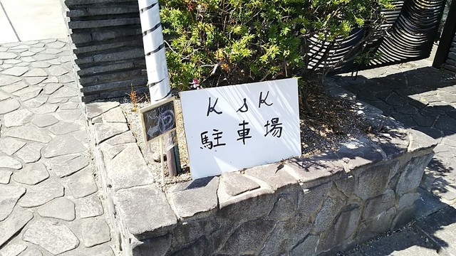 駐車場もあります。カフェと繋がる民家の敷地内を利用することができ、通りから駐車場へ入る入口前には案内看板も出ています。