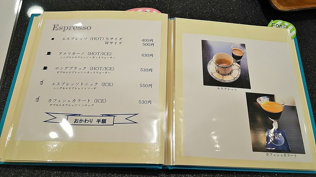 専用のエスプレッソマシンにて淹れられるエスプレッソメニューがあります。ダブルエスプレッソとシロップの重層の見栄えが素敵そうなカフェシェカラートもどんなものか気になります。