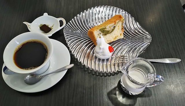 珈琲・春風ブレンド(440円)、抹茶シフォンケーキ(280円)