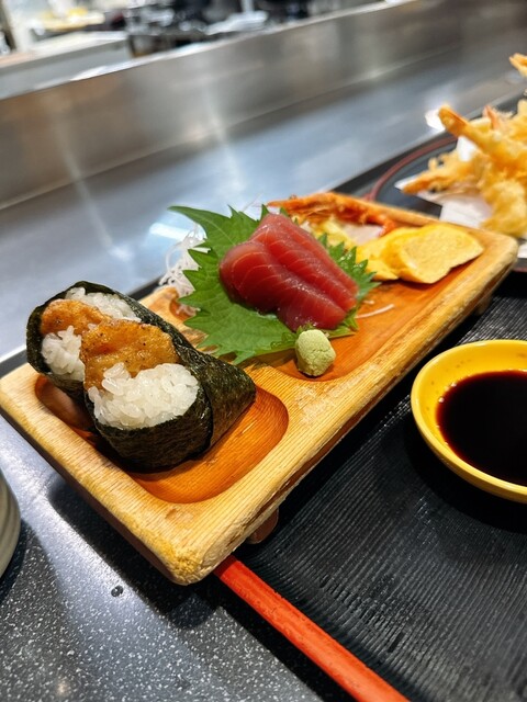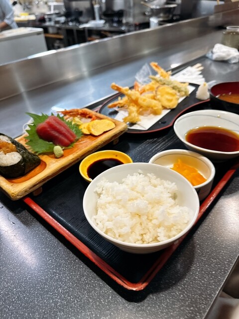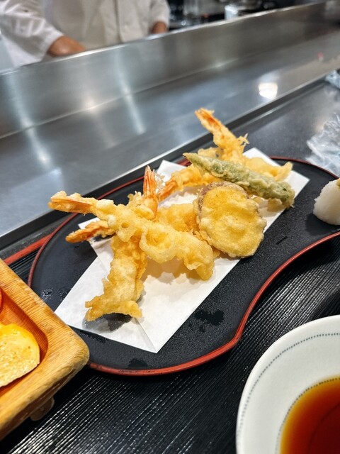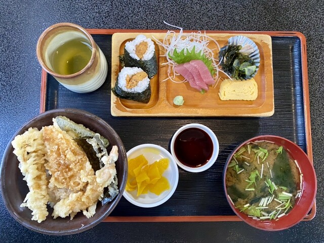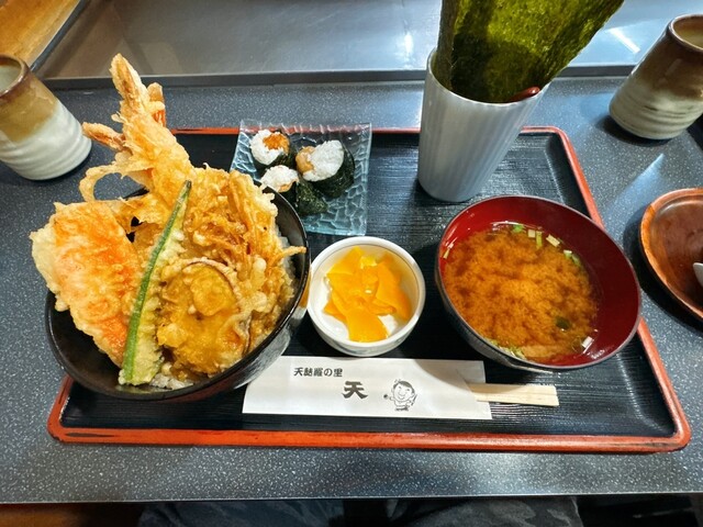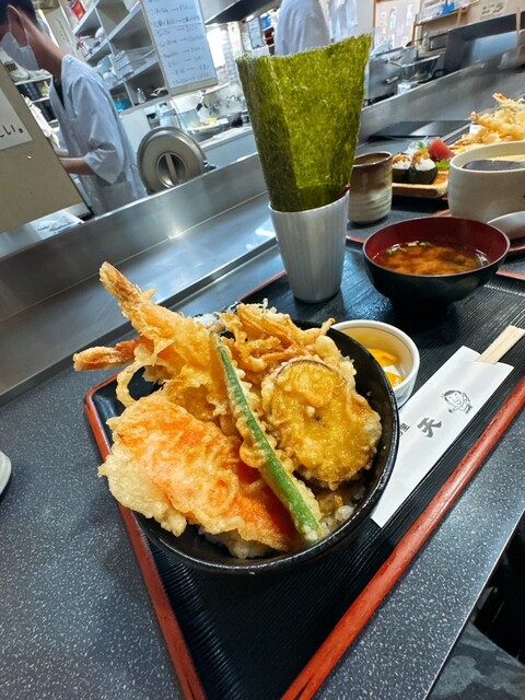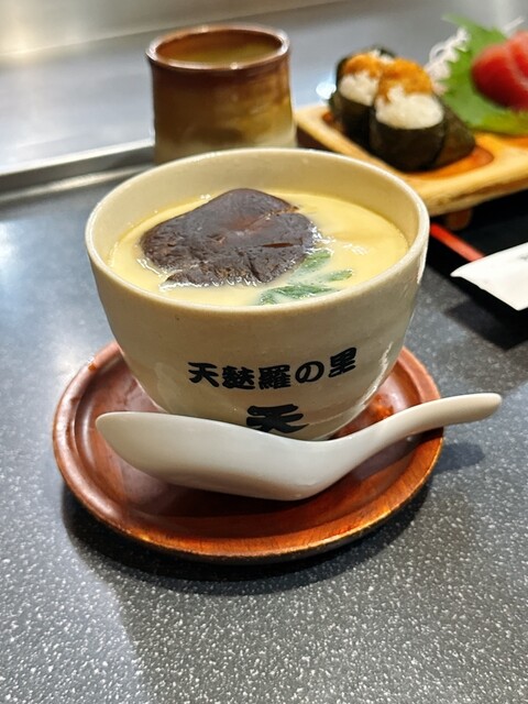メニューはたくさんあるので非常に選ぶのが難しく時間がかかりました。私は大海老天丼の3本を、妻は、のこさんとい定食に大茶碗蒸しを付けてお願い...