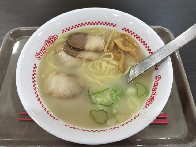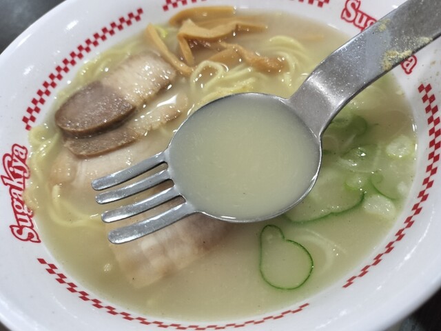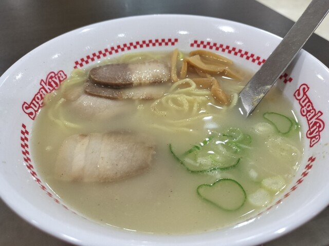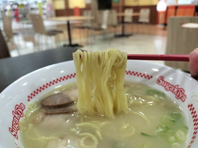 メインのラーメンは、白濁したおなじみのスガキヤスープ。マイルドな味わいで、するすると飲めてしまいま...