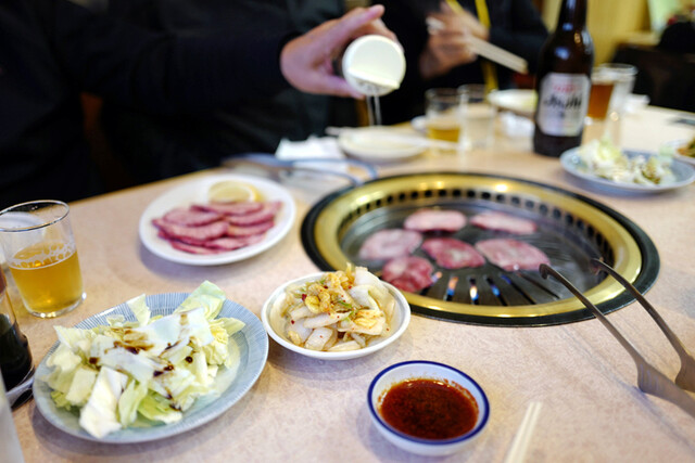 16:30が正式にオープンする時間なのですが、オープン前から続々とお客さんが入店する焼肉店そしてオープンの時間まで指定された席に着席して待機します。