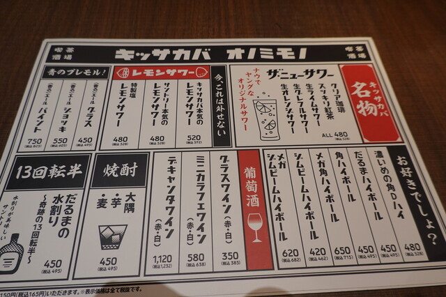 | ドリンク | 日本酒あり、焼酎あり、ワインあり、カクテルあり、ワインにこだわる、カクテルにこだわる |