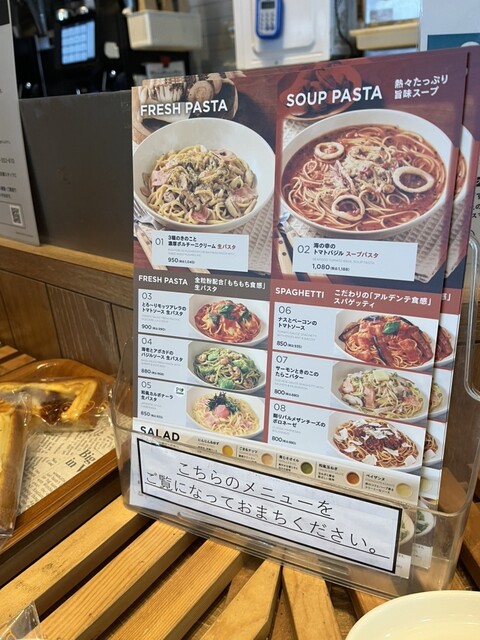 Pastaランチ、サラダ、ドリンク、レジ前のカットPIZZAです〜