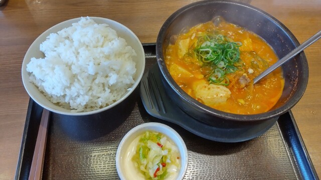 私は「カルビ丼ミニホルモンスン豆腐セット」(税込1,050円)、嫁さんは「海鮮スン豆腐定食」(税込850円)を注文です。