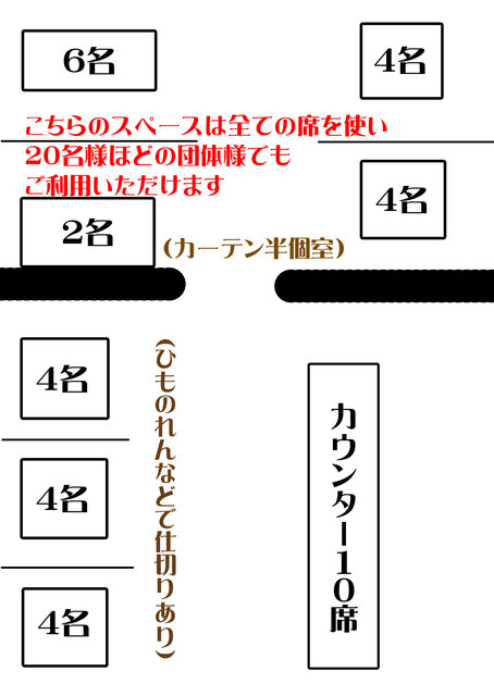 無 ※カーテンで仕切った半個室風のテーブル席をご用意しております。詳細はお気軽にお問い合わせください。 |