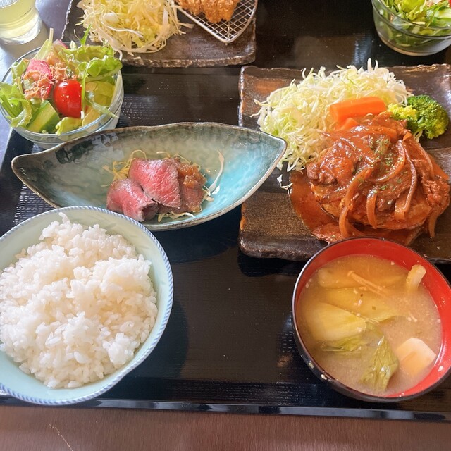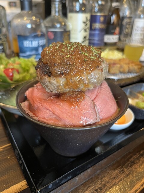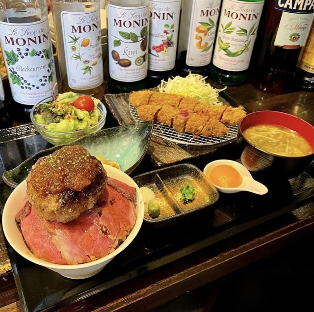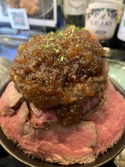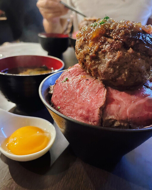 このメニューを知ってからずっと気になっていたお店です。ご飯の上にローストビーフ、更にその上にげんこつバンバーグ。肉肉丼♪お肉感のしっかりしたハンバーグ、たまりません。他にも美味しそうなメニ...