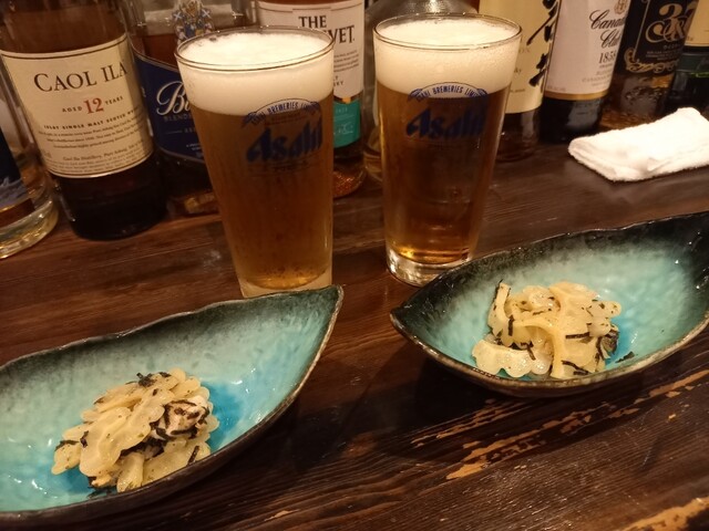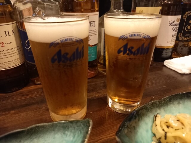 カウンター席に腰掛け、まずは生ビールで乾杯!