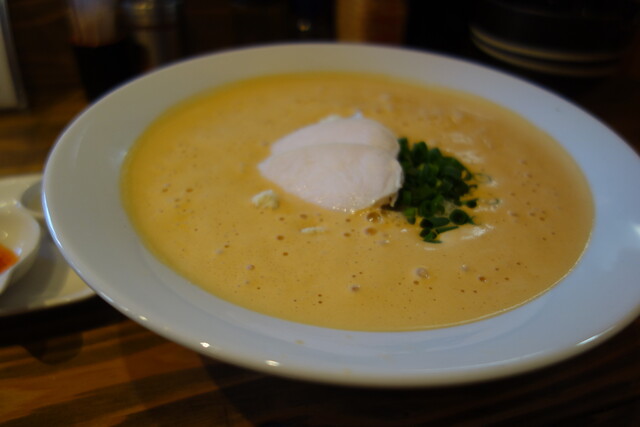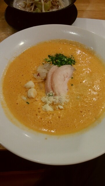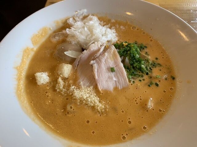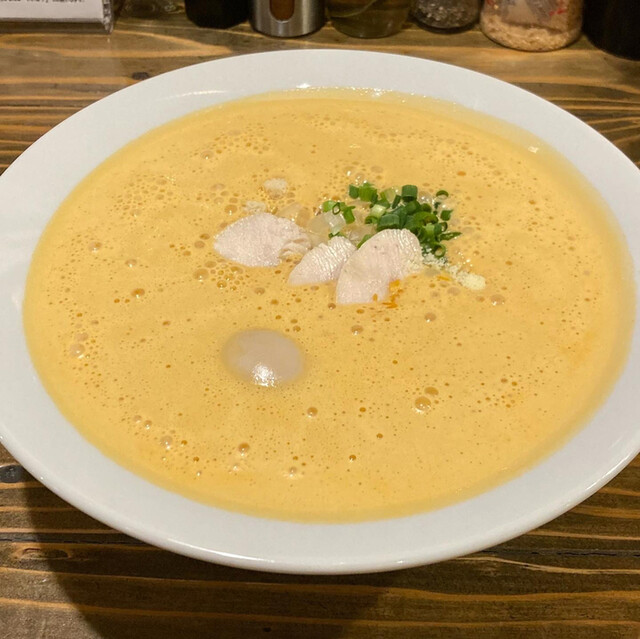 イタリアンシェフが手がける 進化系ラーメン! せっかくなので変わり種な 『オマール海老湯+味玉入り』を注文! オマール海老をじっくり煮込み 砕き、抽出した濃厚な海老の... 詳細を見る
