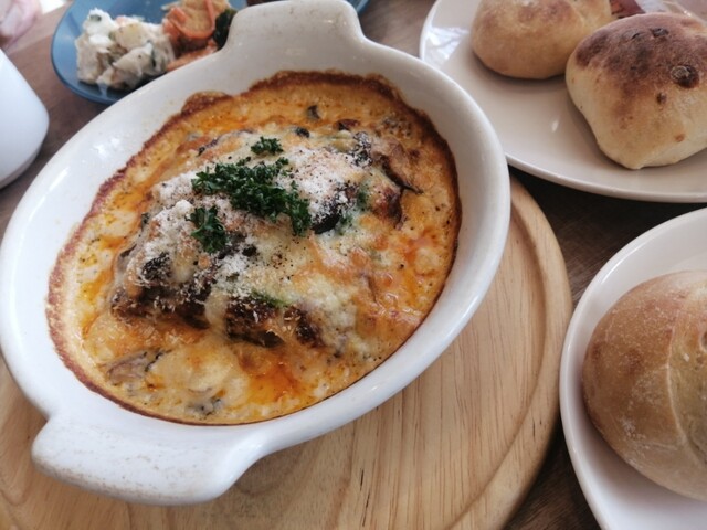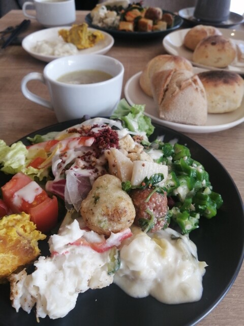 国道沿い、少し入ったところにある素敵なカフェでした。平日でしたが13:15に予約。伺ったときは7.8割程席が埋まっていましたが、前の時間帯の方が多かったのかビュッフェのところは空い... 詳細を見る