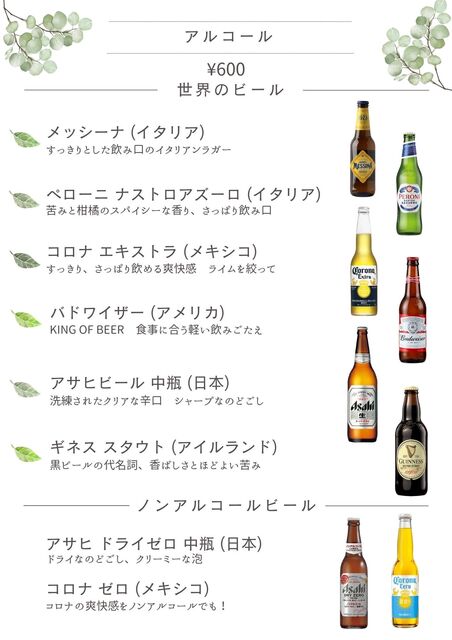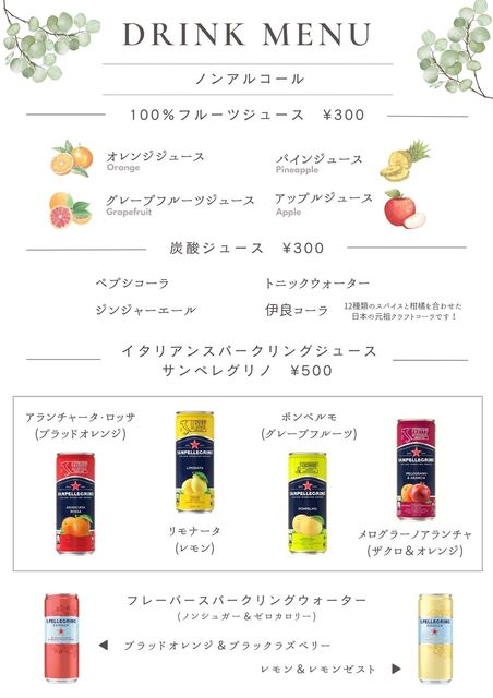 | ドリンク | ワインあり、カクテルあり |
