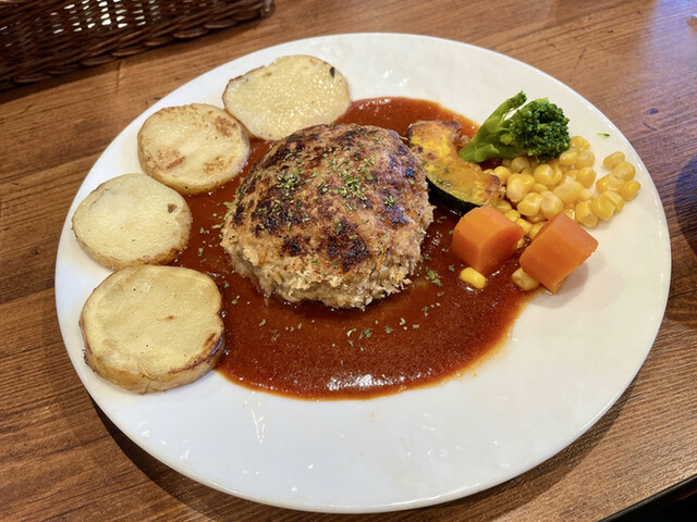 濃厚な赤味噌ソースと肉肉しいハンバーグの相性が抜群で、付け合わせの野菜もおいしかったです!