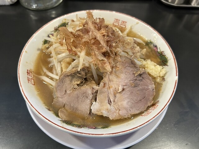 こちらの方面に買い物があったのでついでに訪問。 弥富のあっ晴れと迷ったが、未訪問のこちらを選択した。 ダイエット中だが今回は特例。 平日の13:40頃に到着。 時間もピークを過ぎているためかすんなり着席できた。 ラーメン並(200g)1000円、野菜ニンニクカラメ増し、アブラカツオ増し増し... 詳細を見る