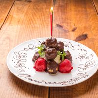 プロフィットロールとウエルカムドリンク付きのお祝いのコース! 内容などお気軽にご相談くださいませ! 大切な方との最高に素敵なひと時を…◎