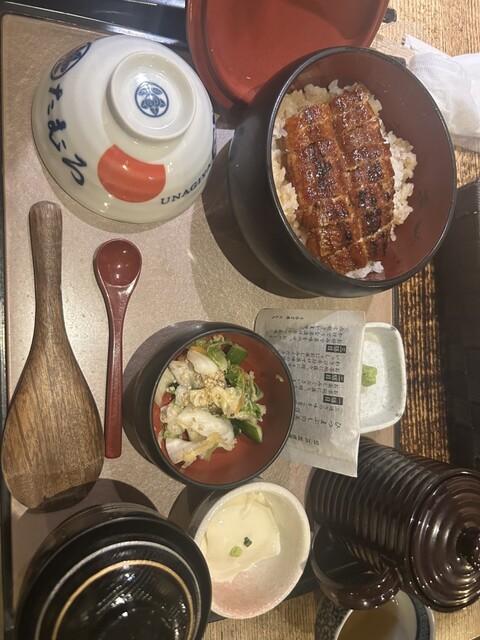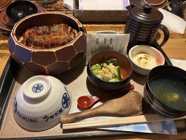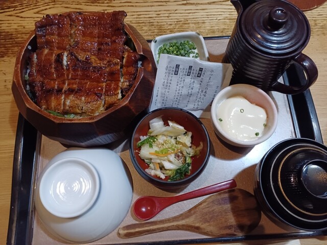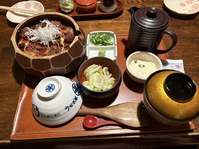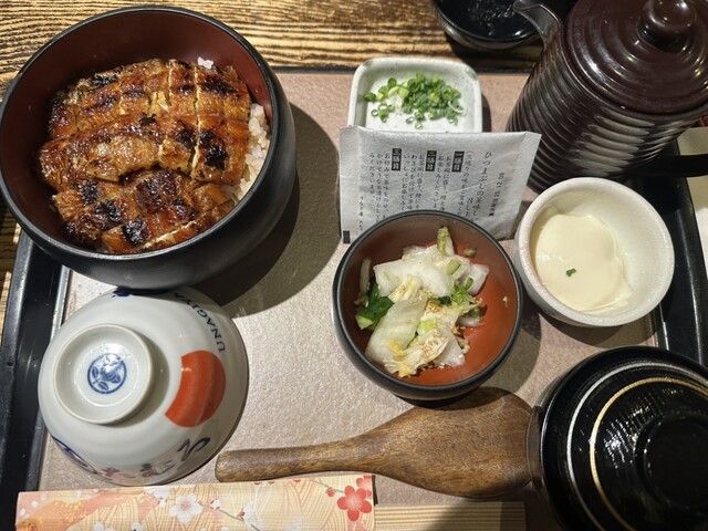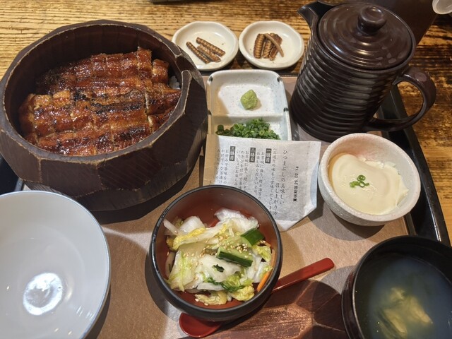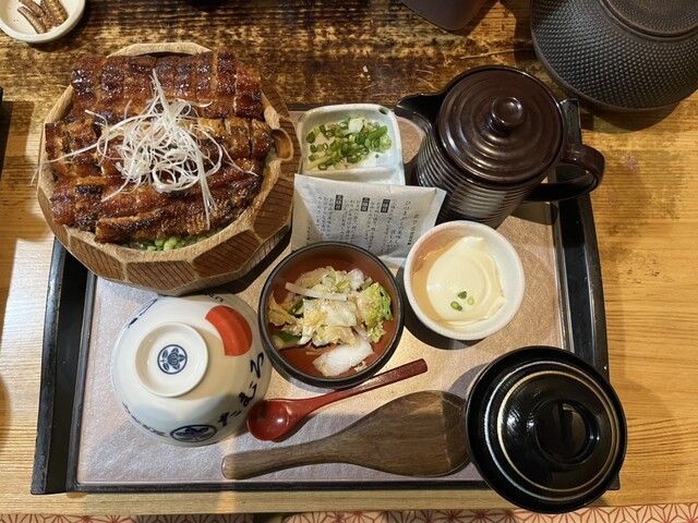 久しぶりに大人数でお邪魔しました。1ヶ月ほど前に7名予約も入れて個室ではなかったのですが広い席があって良かったです。しそまぶしの特上とひつまぶしの特上、う巻きをお願いしました。う巻きは人数に合わせて7...