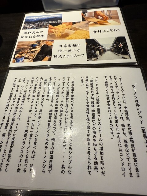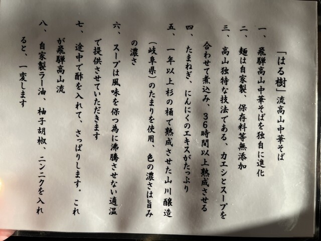高山中華そばのお店ですが、豚と魚の白湯そばも人気、限定メニューも随時やってます。それぞれのメニューにあった自家製麺が特徴。家族でゆるりとやってます。 |