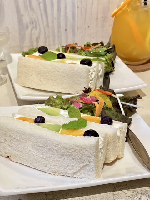 サラダ+フルーツ酢+フルーツサンド(ドリンク代+280円)
