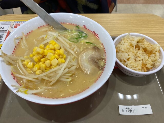 合わせ味噌ラーメンは米味噌ベースで甘口仕立て、もやしたっぷりで生姜が仄かに香りニン...