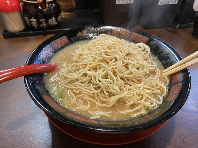 替え玉2玉無料、、!? にそそられて入店。 入るとプ~ンと豚骨のニオイ。 苦手な人にはちょっとキツいかもしれません。 私は逆に期待が高まりました。 豚骨醤油ラーメンを食券... 詳細を見る