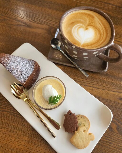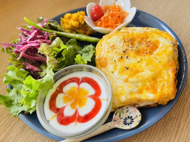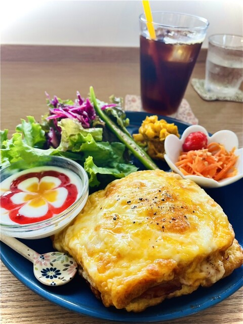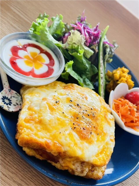 10時〜14時まではブランチタイム。カナダ生まれのモンティクリスト(フレンチトーストとクロックムッシュの中間のような料理)のブランチなど自家製パンを使ったお野菜たっぷりのブランチを5種ご用意しております。手作りのスィーツはチーズケーキやプリン等定番のものからキャラメルタフィーケーキ等季節のものを常時3〜5種ご用意しております。お飲み物は紅茶専門店Tea house Simaから届く香り高いオリジナ...ルブレンドティーやスペシャルティコーヒーなど各種ご用意しております。日々かわる、窓から見える景色とともにおたのしみください。