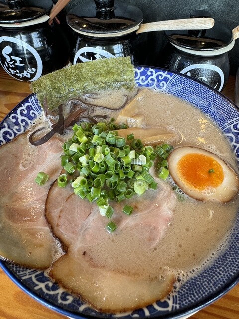 備忘ログ 4月 豚骨ラーメン全部のせ 850円也 チャーシュー2枚 煮卵半分 シナチク きくらげ 海苔 博多ネギ ラーメンに必須の具材が勢ぞろい! コ... 詳細を見る