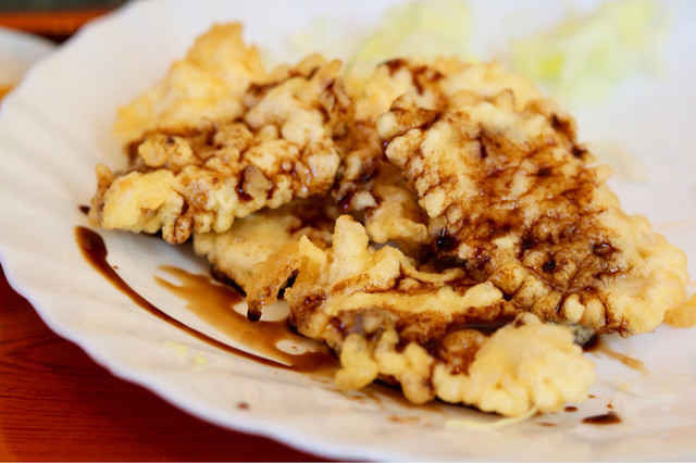 この日のメインは鶏胸肉の天ぷらでした。