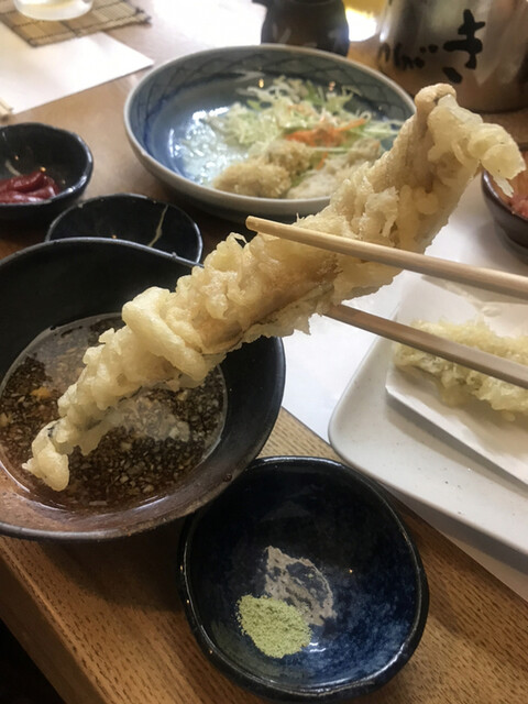 天ぷら盛り合わせは、海老、椎茸、ナス、お魚、さつまいも、かぼちゃ、オクラ、かき揚げとたくさんの...
