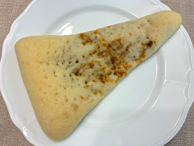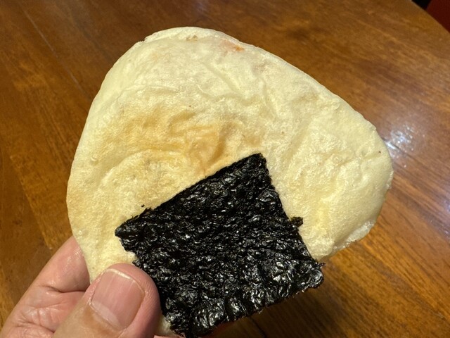 三角形のパン生地に、海苔まで貼られた、おにぎりパン。