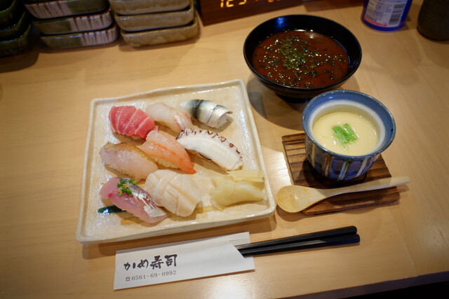 愛知県尾張旭市にある寿司店、休日の12時頃にランチ目的での訪問。 カウンター席に案内され、このメニューを注文してみた。 ★ おまかせ8貫 3500円 〜〜 直感... 詳細を見る