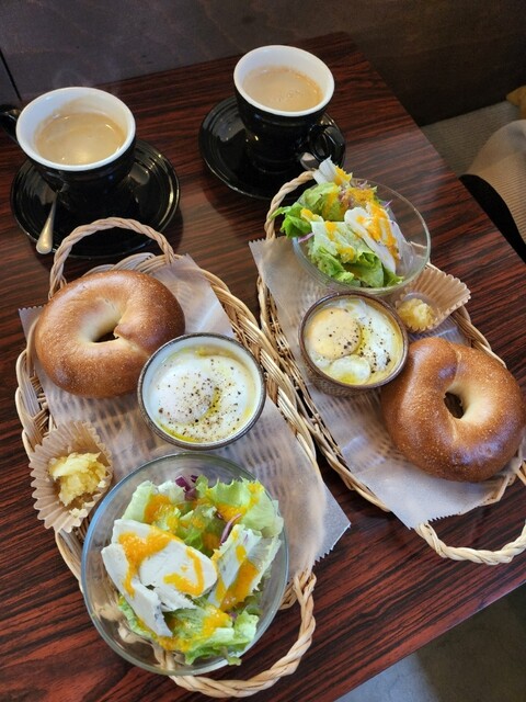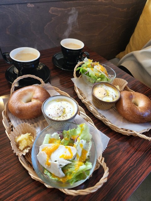 べーグル+サラダ+エッグスラット+手作りパイナップルバター+ドリンク(セットドリンク...
