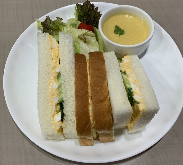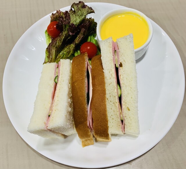 ランチメニューはハムサンド、エッグサンド、ミックスサンドの3種類、それに夏季限定でそうめんもありますが、種類としてはそれほど多くないですね。また、パンケーキにクレープ、コーヒーゼリーや白玉ぜんざいなど...