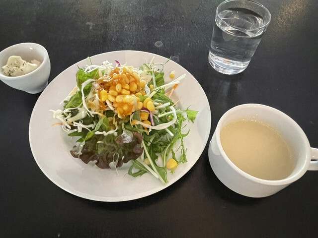水とサラダとスープはセルフサービスでフリーなのだが、そんなにいやしくないので1回取って終わり。