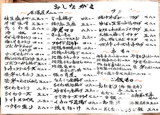 | ドリンク | 焼酎あり、焼酎にこだわる |