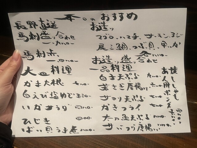 | 空間・設備 | 落ち着いた空間、カウンター席あり、座敷あり |