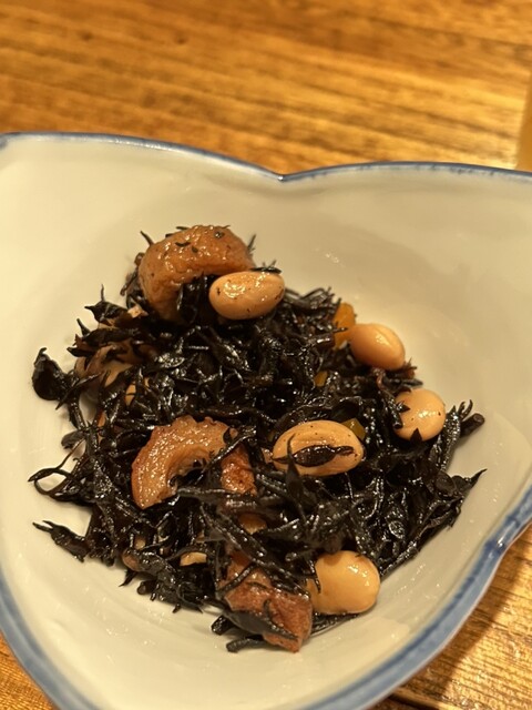 お通しの「ひじきの煮物」の味付けは濃い目。...