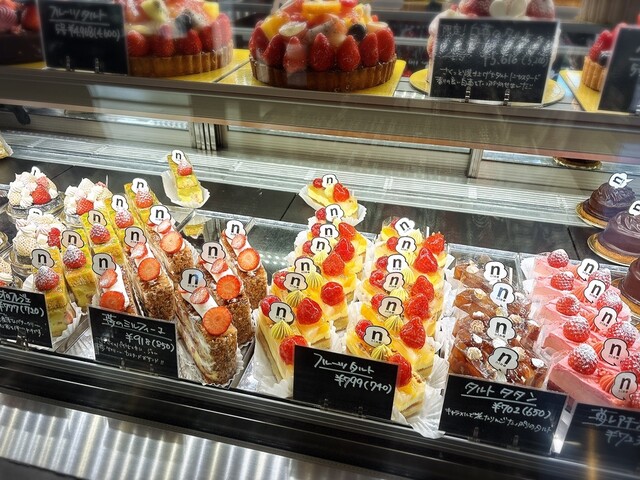 すると、細長いタルト生地ベースの美味しそうなケーキがズラり。思わず息を呑むワイ。